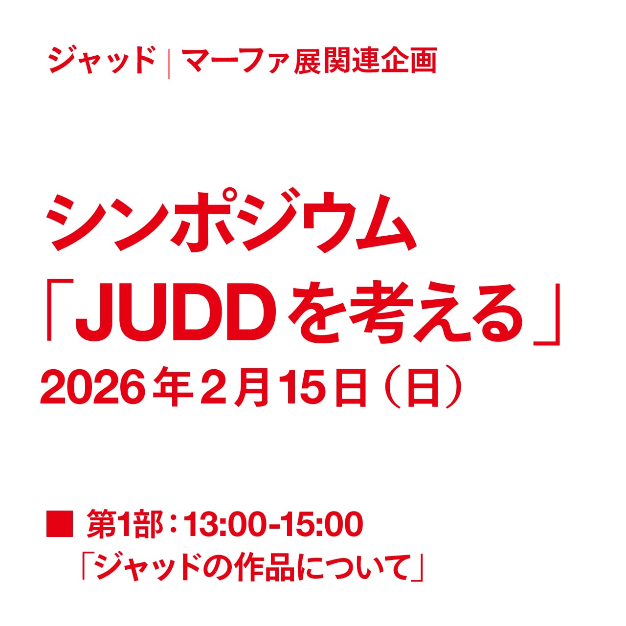ワタリウム美術館で開催される「ジャッド|マーファ展」(2026.2.15-6.7)を記念したシンポジウム「JUDDを考える」第1部にお申込いただけます。
